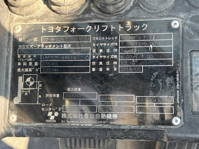 XE NÂNG DẦU 2,5 TẤN TOYOTA 02-8FD25 A8FD25-69614