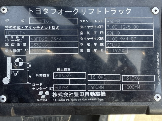 XE NÂNG DẦU 2 TẤN TOYOTA 02-8FD20 A8FD25-73441