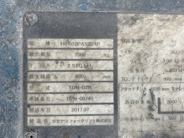 XE NÂNG DẦU 2 TẤN SUMITOMO 11FD20PAX324D D2N-00740