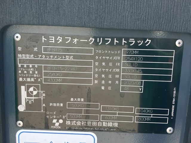 XE NÂNG ĐIỆN 1.5 TẤN TOYOTA 8FBR15