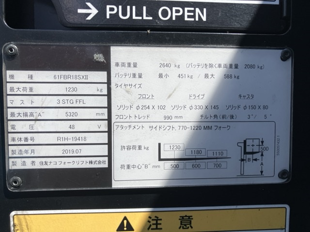 XE NÂNG ĐIỆN 1.8 TẤN ĐỨNG LÁI SUMITOMO 61FBR18SXII R1H-19418