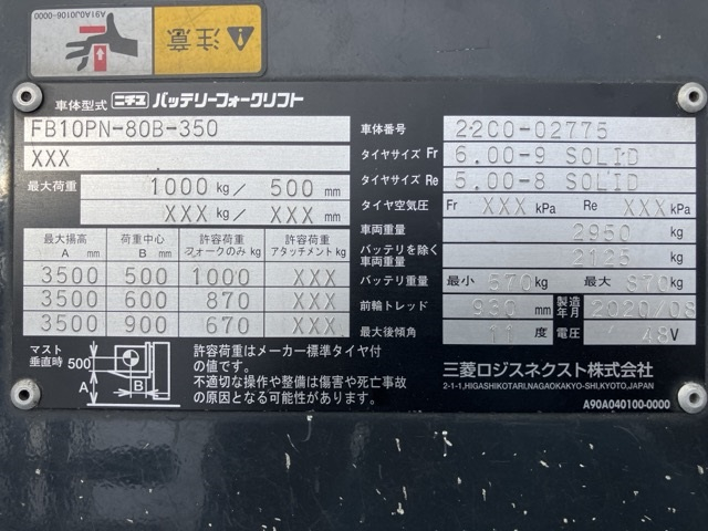 XE NÂNG ĐIỆN 1 TẤN NICHIYU FB10PN-80B-350 22C0-02775