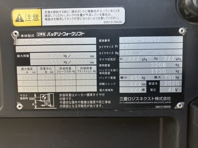 XE NÂNG ĐIỆN 1.5 TẤN ĐỨNG LÁI NICHIYU FBRM15-85-400 1360-03097