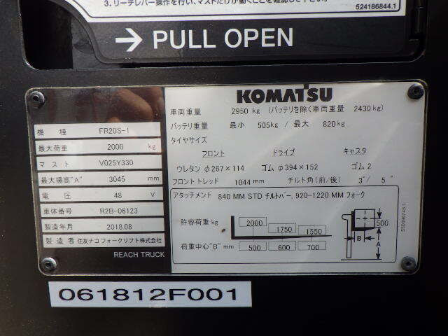 XE NÂNG ĐIỆN KOMATSU 2 TẤN ĐỨNG LÁI FR20S-1 R2B-06123