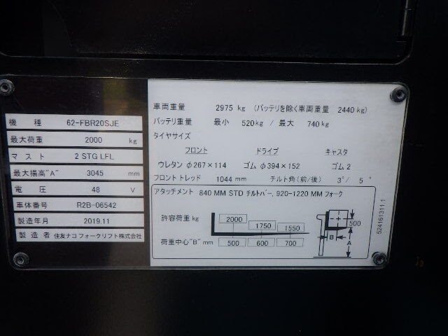 XE NÂNG ĐIỆN 2 TẤN ĐỨNG LÁI SUMITOMO 62-FBR20SJE R2B-06542