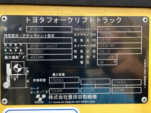 XE NÂNG ĐIỆN 1.5 TẤN ĐỨNG LÁI TOYOTA 8FBR15 26693