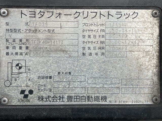 XE NÂNG DẦU 3,5 TẤN TOYOTA 7FD35 7FDK40-14177