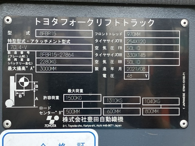 XE NÂNG ĐIỆN 1.5 TẤN TOYOTA 8FBR15