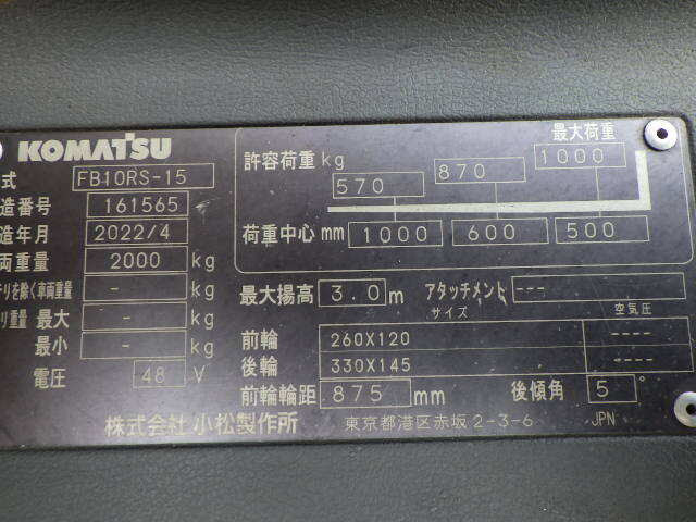 XE NÂNG ĐIỆN 1TẤN KOMATSU FB10RS-15 161565