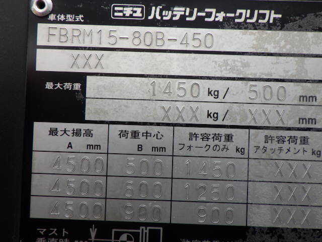 XE NÂNG ĐIỆN 1.5 TẤN ĐỨNG LÁI NICHIYU FBRM15-80B-450 131E08978