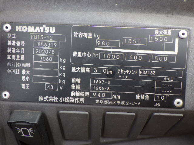 XE NÂNG ĐIỆN 1.5 TẤN KOMATSU FB15-12 856319