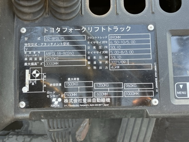 XE NÂNG DẦU 1.5 TẤN TOYOTA 02-8FDL15 A8FDL18-80260