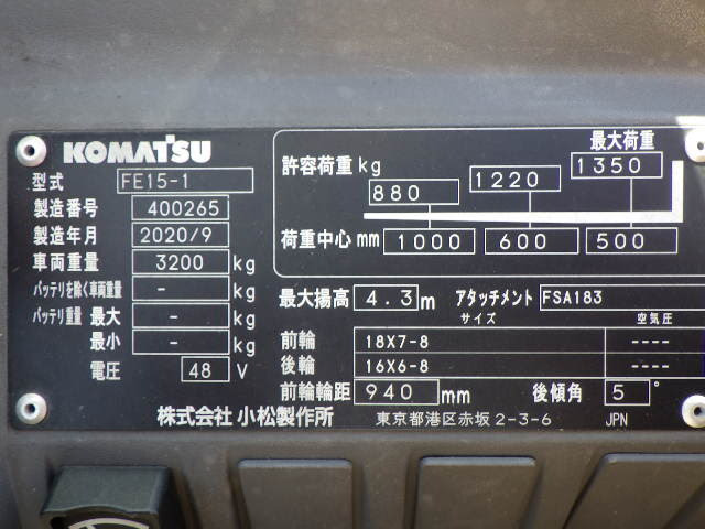 XE NÂNG ĐIỆN 1.5 TẤN KOMATSU FE15-1 400265