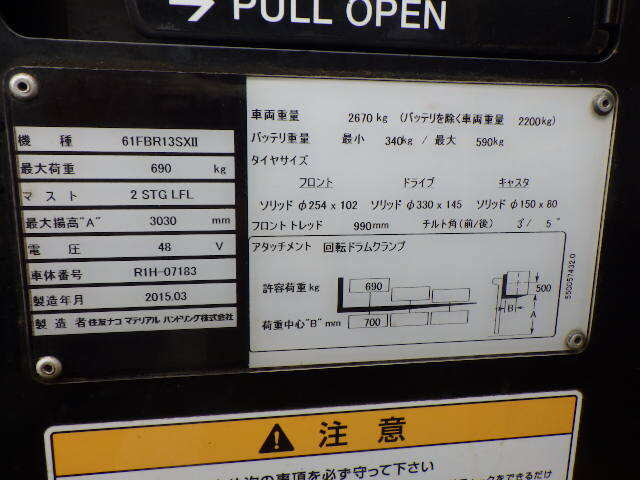 XE NÂNG ĐIỆN 1.3 TẤN ĐỨNG LÁI SUMITOMO 61FBR13SXII R1H-07183