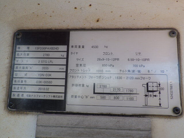XE NÂNG DẦU 3 TẤN SUMITOMO 13FD30PAXIII24D D3K-00580