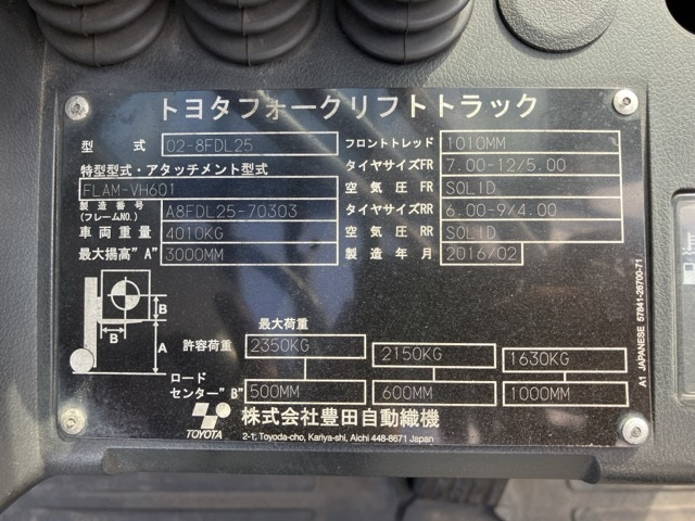 XE NÂNG DẦU 2,5 TẤN TOYOTA 02-8FD25 A8FDL25 70303