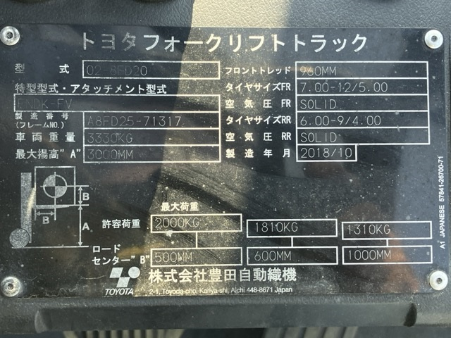 XE NÂNG DẦU 2 TẤN TOYOTA 02-8FD20 A8FD25-71317