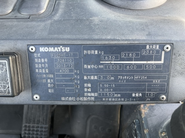 XE NÂNG DẦU 2,5 TẤN KOMATSU FD25HT-17 328110