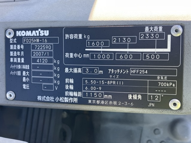 XE NÂNG DẦU 2,5 TẤN KOMATSU FD25HW-16 722590