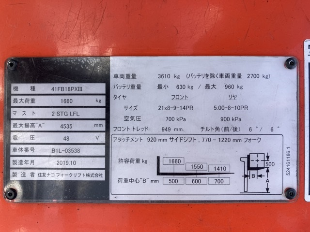 XE NÂNG ĐIỆN 1.8 TẤN SUMITOMO 41FB18PXIII B1L-03538