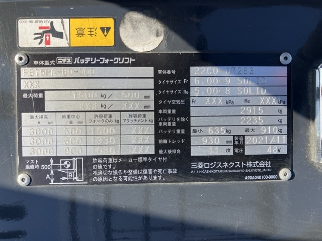XE NÂNG ĐIỆN 1.5 TẤN NICHIYU FB15PN-80-300 22C0-07283