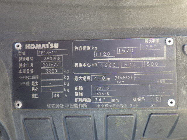 XE NÂNG ĐIỆN 1.8 TẤN KOMATSU FB18-12 850958