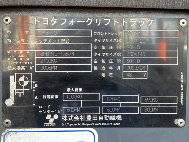 XE NÂNG ĐIỆN 1 TẤN ĐỨNG LÁI TOYOTA 8FBR10 13674