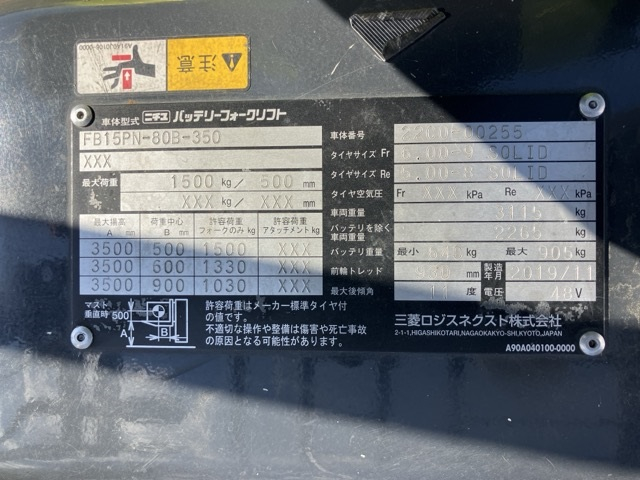 XE NÂNG ĐIỆN 1.5 TẤN NICHIYU FB15PN-80B-350 22C0-00255