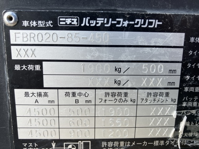 XE NÂNG ĐIỆN 2 TẤN ĐỨNG LÁI NICHIYU FBR20-85-450 1470-00126