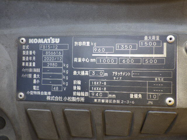 XE NÂNG ĐIỆN 1.5 TẤN KOMATSU FB15-12 856616