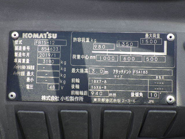 XE NÂNG ĐIỆN 1.5 TẤN KOMATSU FB15-12 854623