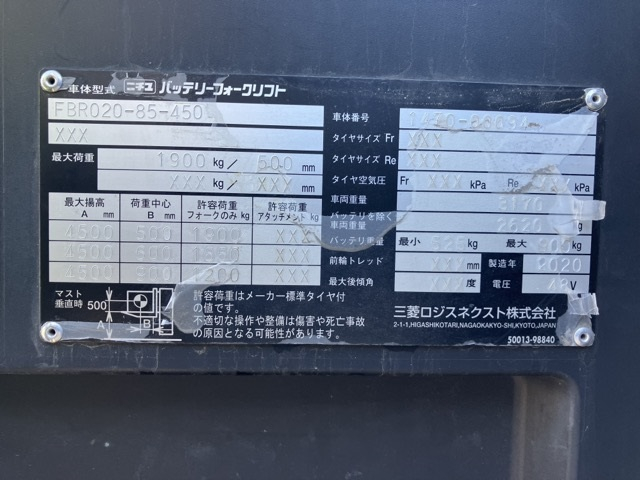 XE NÂNG ĐIỆN 2 TẤN ĐỨNG LÁI NICHIYU FBR20-85-450 1470-00094