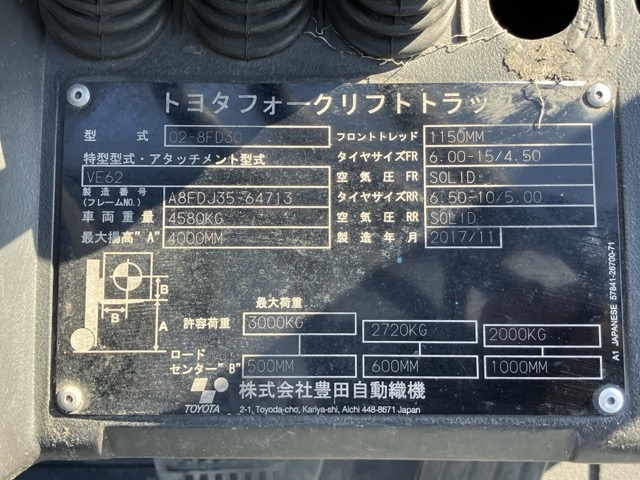 XE NÂNG DẦU 3 TẤN TOYOTA 02-8FD30 A8FDJ35-64713