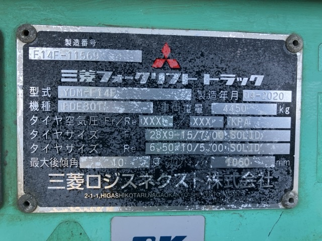 XE NÂNG DẦU 3 TẤN MITSUBISHI FDE30T F14F-11569 2020