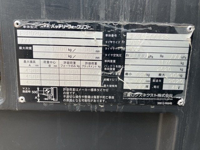 XE NÂNG ĐIỆN 2 TẤN ĐỨNG LÁI NICHIYU FBR20-85-450 1470-00128