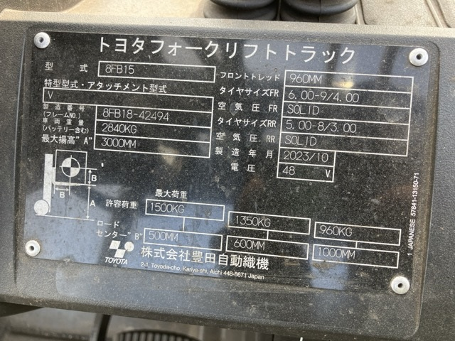 XE NÂNG ĐIỆN 1.5 TẤN TOYOTA 8FB15 8FB18-42494