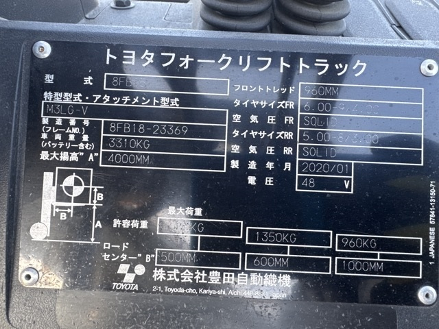 XE NÂNG ĐIỆN 1.5 TẤN TOYOTA 8FB15 8FB18-23369 2020