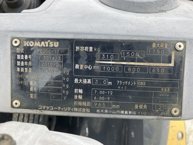 XE NÂNG DẦU 2,5 TẤN KOMATSU FD25C-17 301423