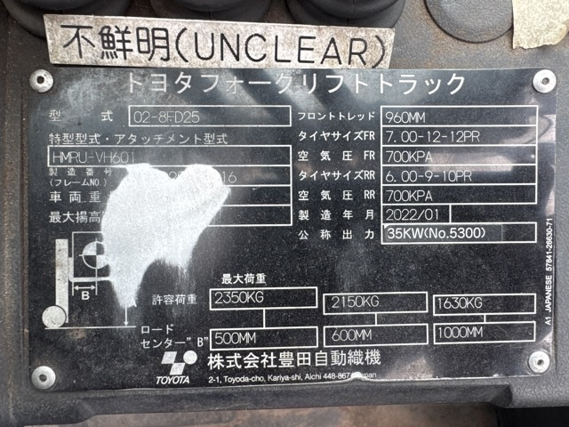 XE NÂNG DẦU 2,5 TẤN TOYOTA 02-8FD25 A8FD25-84616
