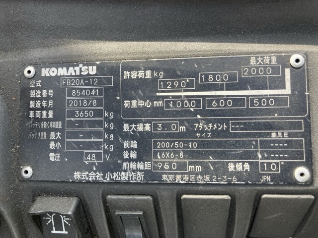 XE NÂNG ĐIỆN 2 TẤN KOMATSU FB20A-12 854041
