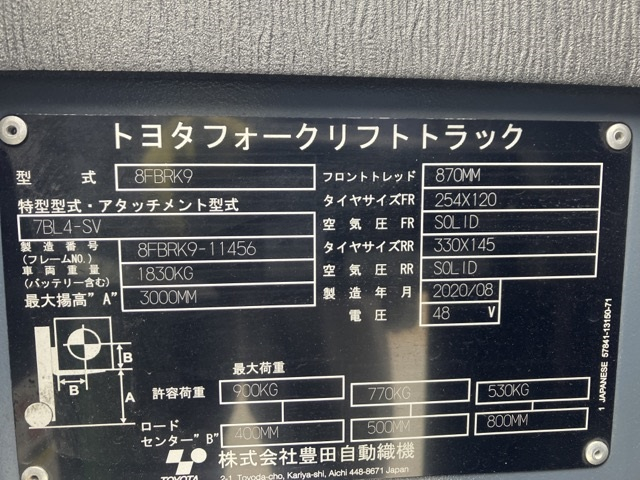 XE NÂNG ĐIỆN 9 TẠ ĐỨNG LÁI TOYOTA 8FBRK9 11456