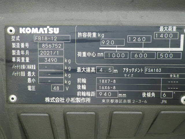 XE NÂNG ĐIỆN 1.8 TẤN KOMATSU FB18-12 856752