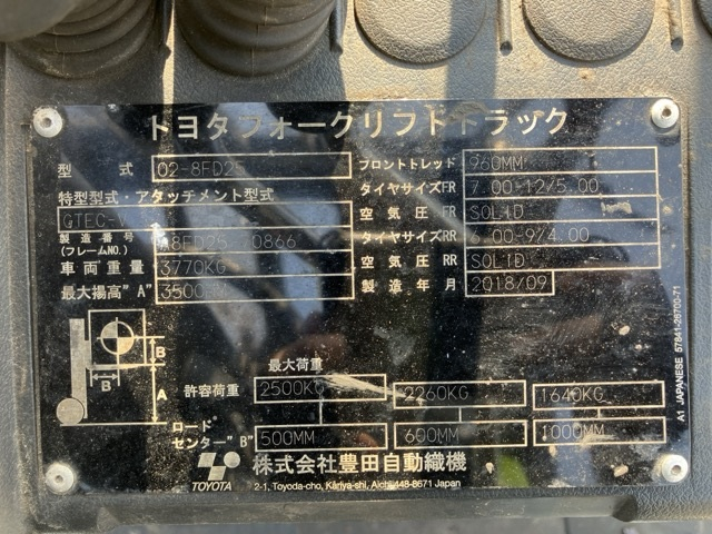 XE NÂNG DẦU 2,5 TẤN TOYOTA 02-8FD25 70866