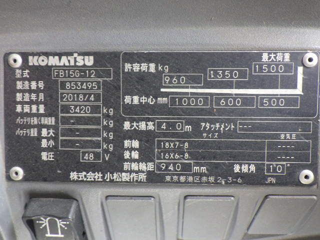 XE NÂNG ĐIỆN 1.5 TẤN KOMATSU FB15G-12 853495