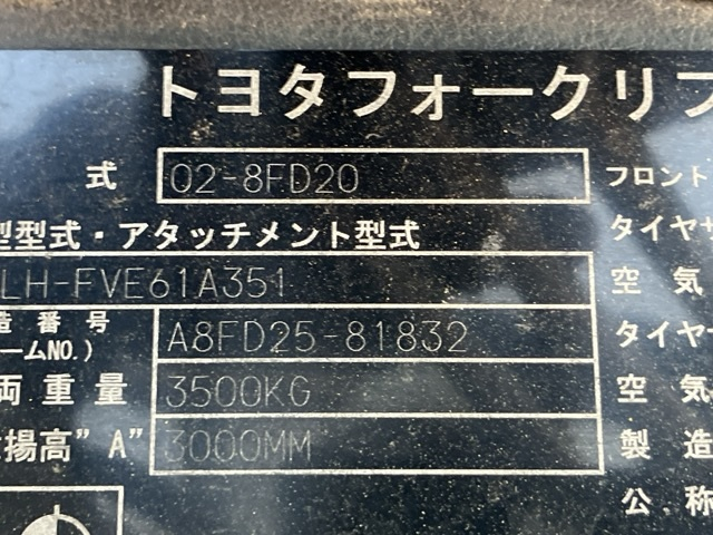 XE NÂNG DẦU 2 TẤN TOYOTA 02-8FD20 A8FD25-81832 2021